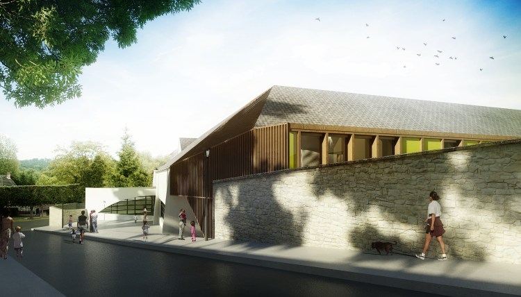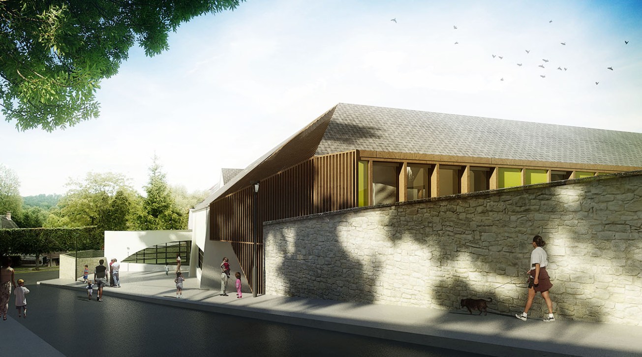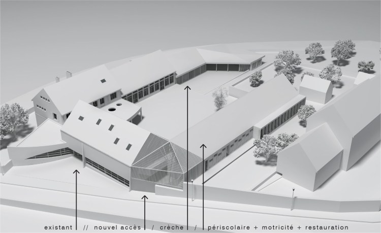 – une école agrandie, conservant son accès actuel, incluant une nouvelle salle de motricité, un accueil périscolaire et une salle de restauration scolaire,
