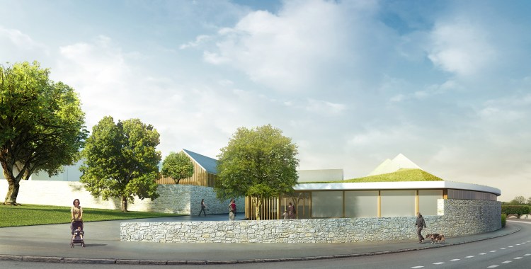 perspective de la crèche depuis la route de Meulan à Mareil-sur-Ourcq – à gauche le futur square, et au fond l’école