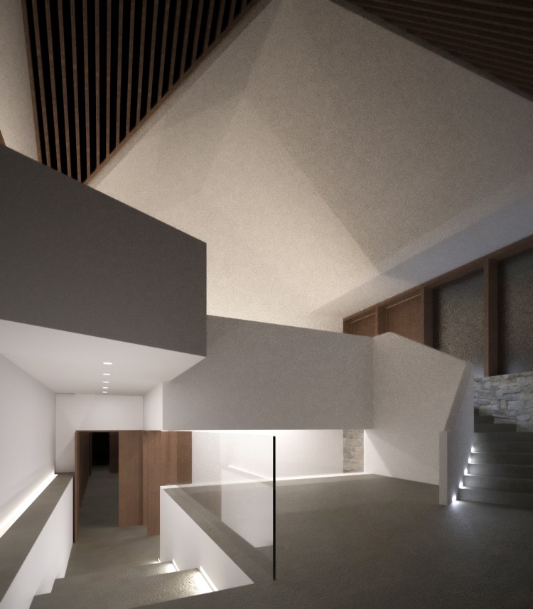 – enfin, pour l’ensemble de la population: un hall public, desservant la bibliothèque agrandie ainsi qu’une salle des fêtes (donnant sur le jardin du presbytère);