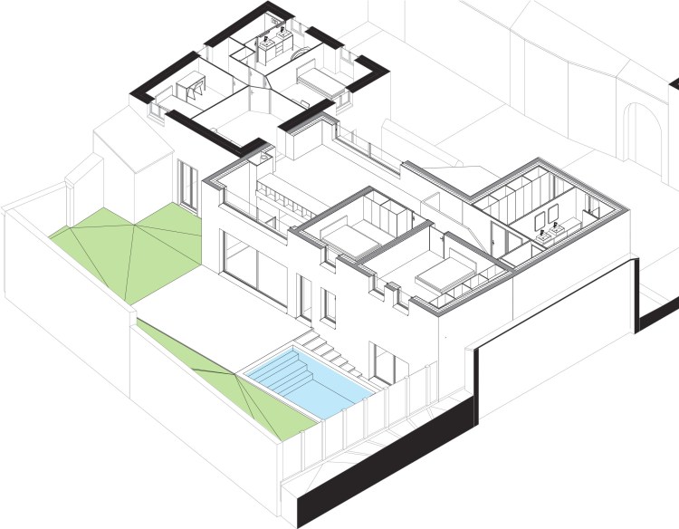 projet 2 – axonométrie côté sud (jardin)