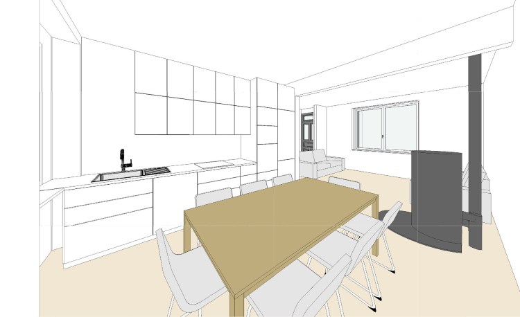 projet – rdc – vue cuisine et séjour