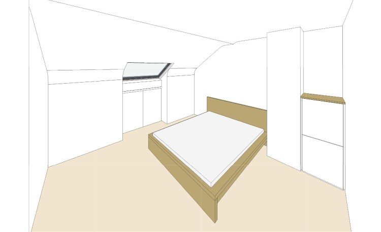 projet – étage – vue chambre principale (côté rue)