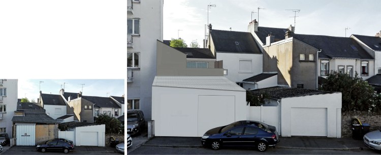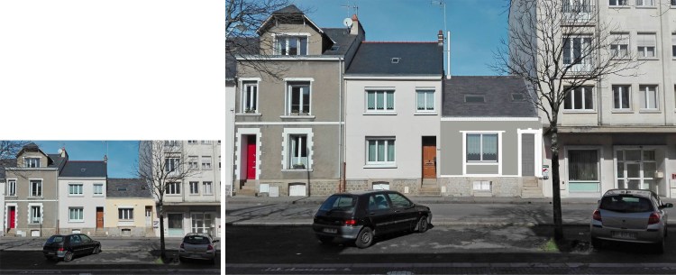 rue Denis Diderot: photographie de l’état initial à gauche, projet à droite