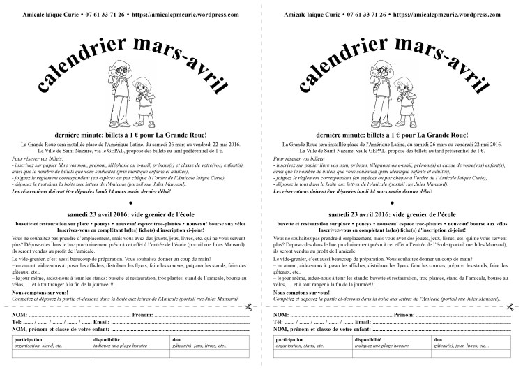 amicale laïque de l’école Pierre et Marie Curie à St-Nazaire