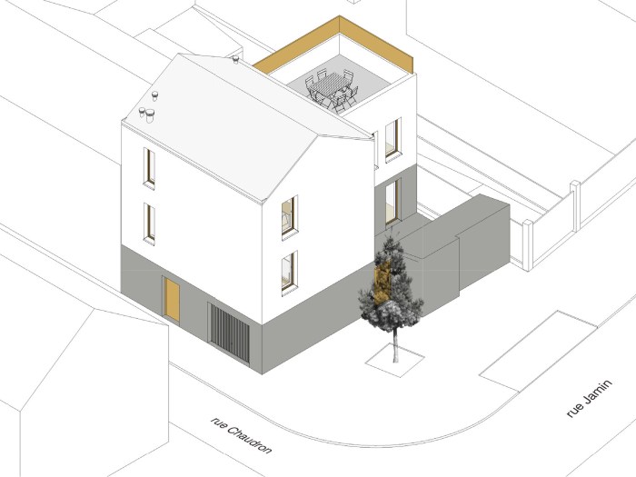 construction d’une maison à St-Denis (93) maîtrise d’ouvrage: privée maîtrise d’œuvre: DONNET TRESSE architectes (DTLAB) / études, pc: 2016-2017 / projet suspendu / 180 m² –